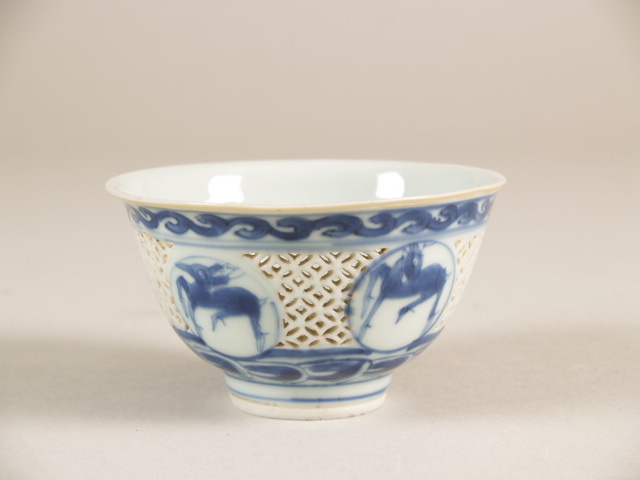 Kom met decor van herten in medaillons en linglong wand (Q26861)