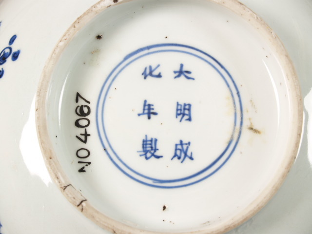 op plat en bodem elk in kobalt blauw zesmerk Chenghua in dubbele ring (Nederlands)