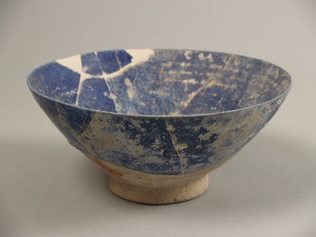 Drie lage kommen, overtrokken met een lapiskleurig alkaliglazuur. De onderzijden en standringen niet geglazuurd.; Ex. A....n een glanzender glazuur en band van ingegrifte abstracte motieven||Afghanistan||Keramiekmuseum Princessehof GMP 1996-085.C |