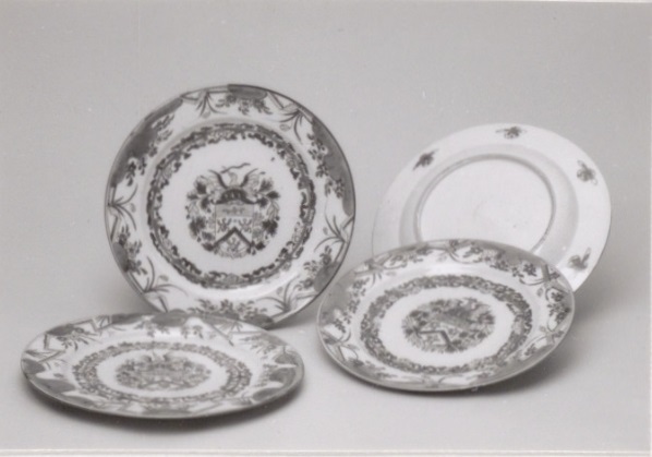 4 borden gedecoreerd met het wapen van de familie Van Gellicum, chine de commande, imari (Nederlands)