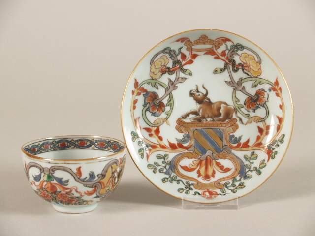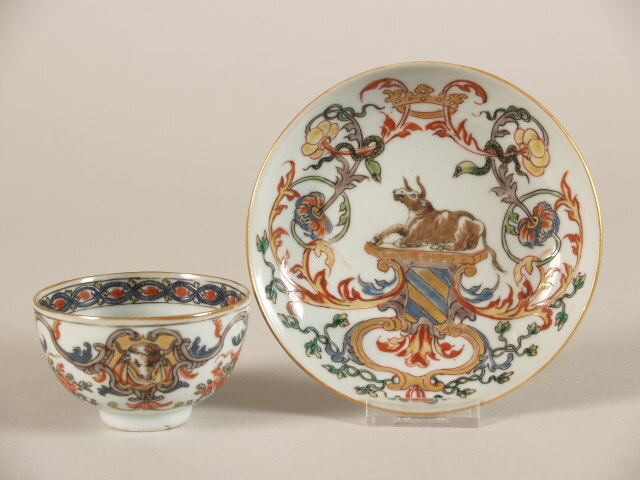 | Nederlands | 2 kop en schotels met decor van familiewapen Ataïde, chine de commande, famille verte |