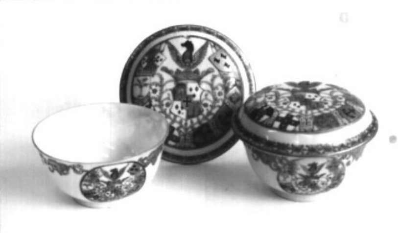 2 kop en schotels met deksel gedecoreerd met de wapens van Van Reverhorst, chine de commande (Nederlands)