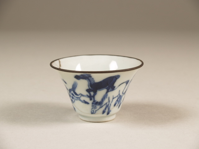 Kop zonder schotel met decor van paarden, 1 van 2 (Nederlands)