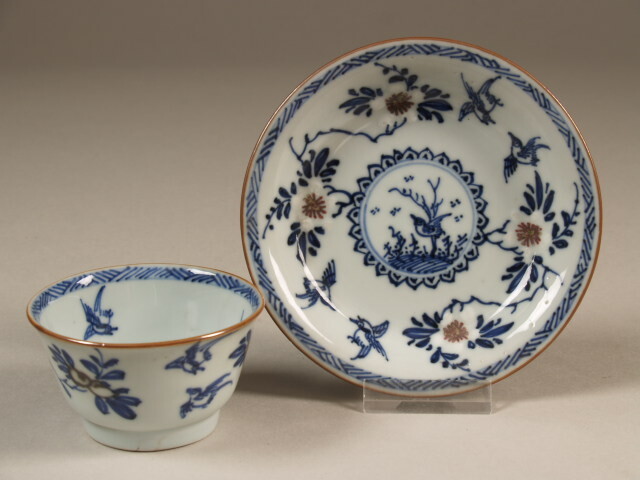 | Nederlands | Kop en schotel met decor van vogels en ranken |