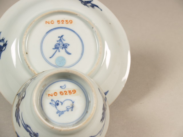 Kop en schotel met decor van vogels en ranken (Q27019)