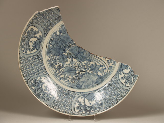 Scherf van een schaal met decor van feniks en bloemen, Swatow (Nederlands)