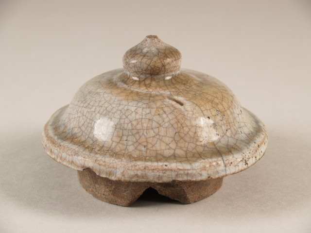 Deksel met knop en bedekt met gecraqueleerd glazuur, 1 van 2 (Nederlands)