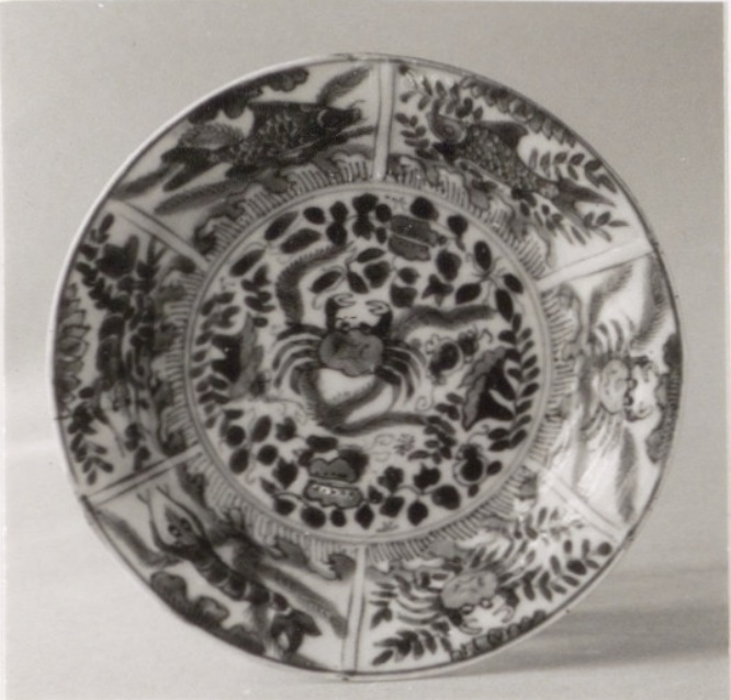 | Nederlands | 3 schotels met decor van krabben en vissen |