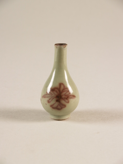 Miniatuurvaas met decor van koperrode bloem en celadonglazuur (Q27114)