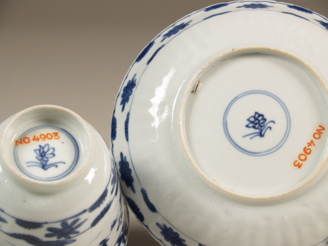 op de bodem een bloeiend plantje in dubbele ring, in kobaltblauw (Nederlands)