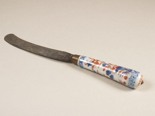 Mes, waarvan het heft een floraal decor heeft in Chinese imaristijl (Nederlands)