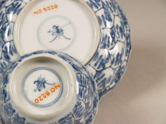 op de bodem in kobaltblauw een tot een karakter gestileerde lingzi in dubbele ring. (Nederlands)
