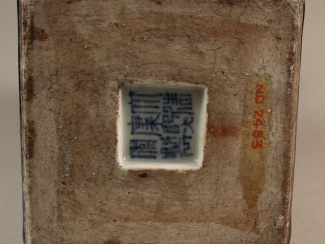op de bodem in kobaltblauw zesmerk 'Ta Ch'ing K'ang chih", in zegelvorm, nien (Nederlands)
