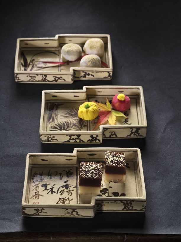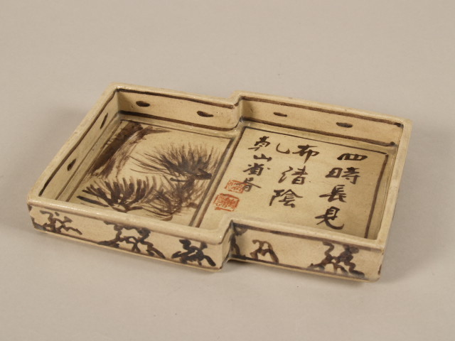 Bakje met decor van bloemen en karakters in Kenzanstijl (Nederlands)