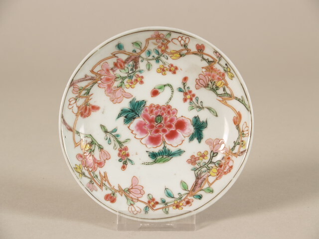| Nederlands | Schotel, onderdeel van kop en schotel met decor van bloeiende takken, famille rose |