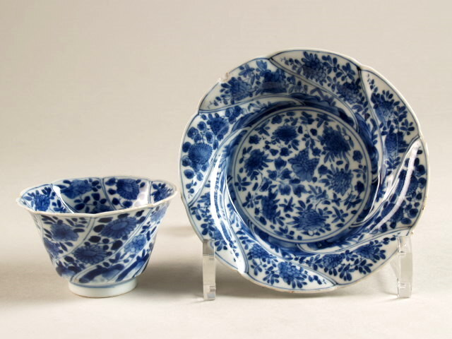 op de bodem in kobaltblauw een vierbladige rozet (Nederlands)