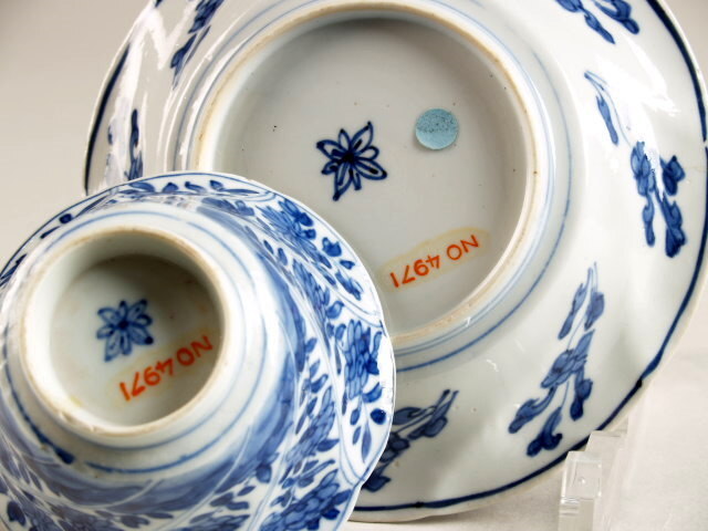 op de bodem in kobaltblauw een vierbladige rozet (Nederlands)