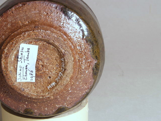 Theekom op lage voet, bedekt met een donkerbruin-groen glazuur||Tamba||Ichino, Shinsui||Keramiekmuseum Princessehof MPH 2007-230.A