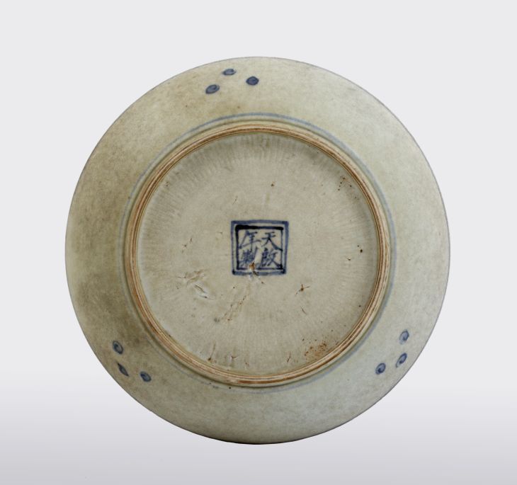 Bord met decoratie van vier geleerden in een landschap van bergen, een rivier en een prunusboom.||China||onbekend||Keramiekmuseum Princessehof BP 2016-373