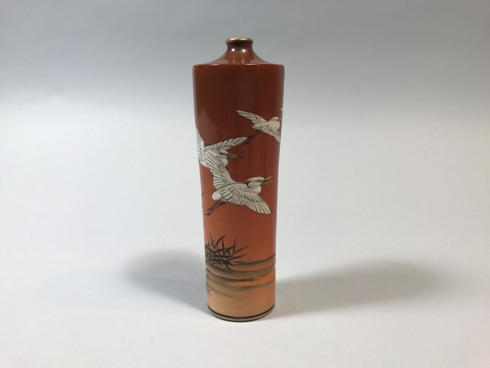 Vaas gedecoreerd met een paar vliegende kraanvogels op rode ondergrond in Satsuma 'Art Nouveau' stijl (Q27654)