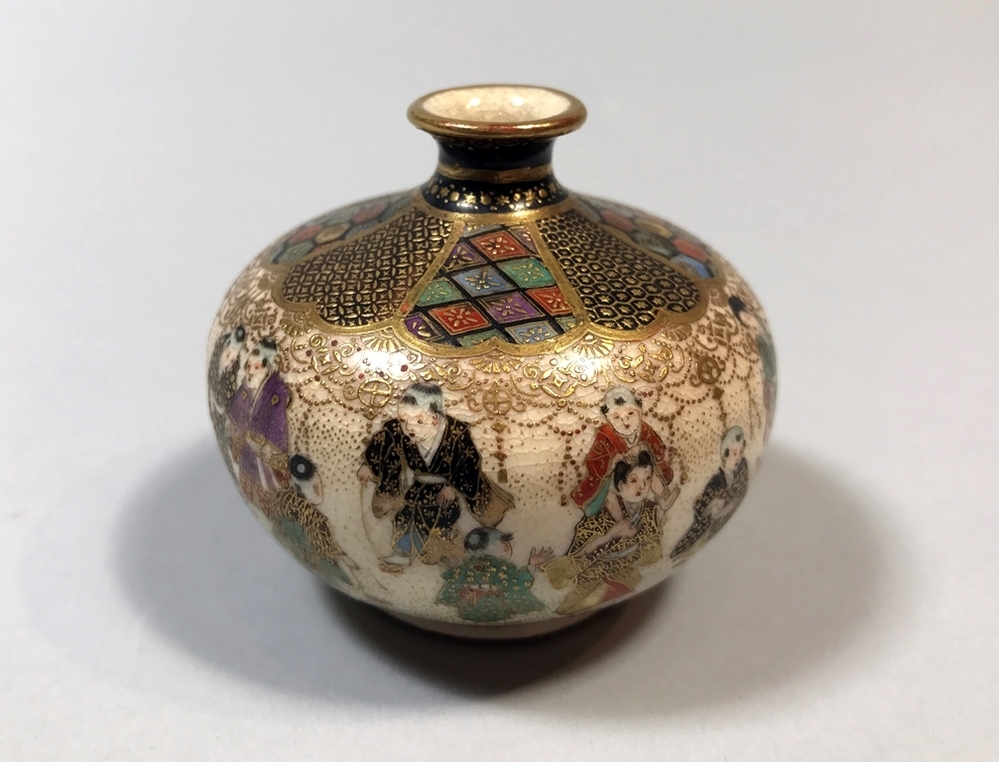 Kleine vaas, gedecoreerd met kersenbloesem in Satsuma stijl met email en goud - Satsuma small vase, decorated in enamels and gold, with a design of figures (Q27656)