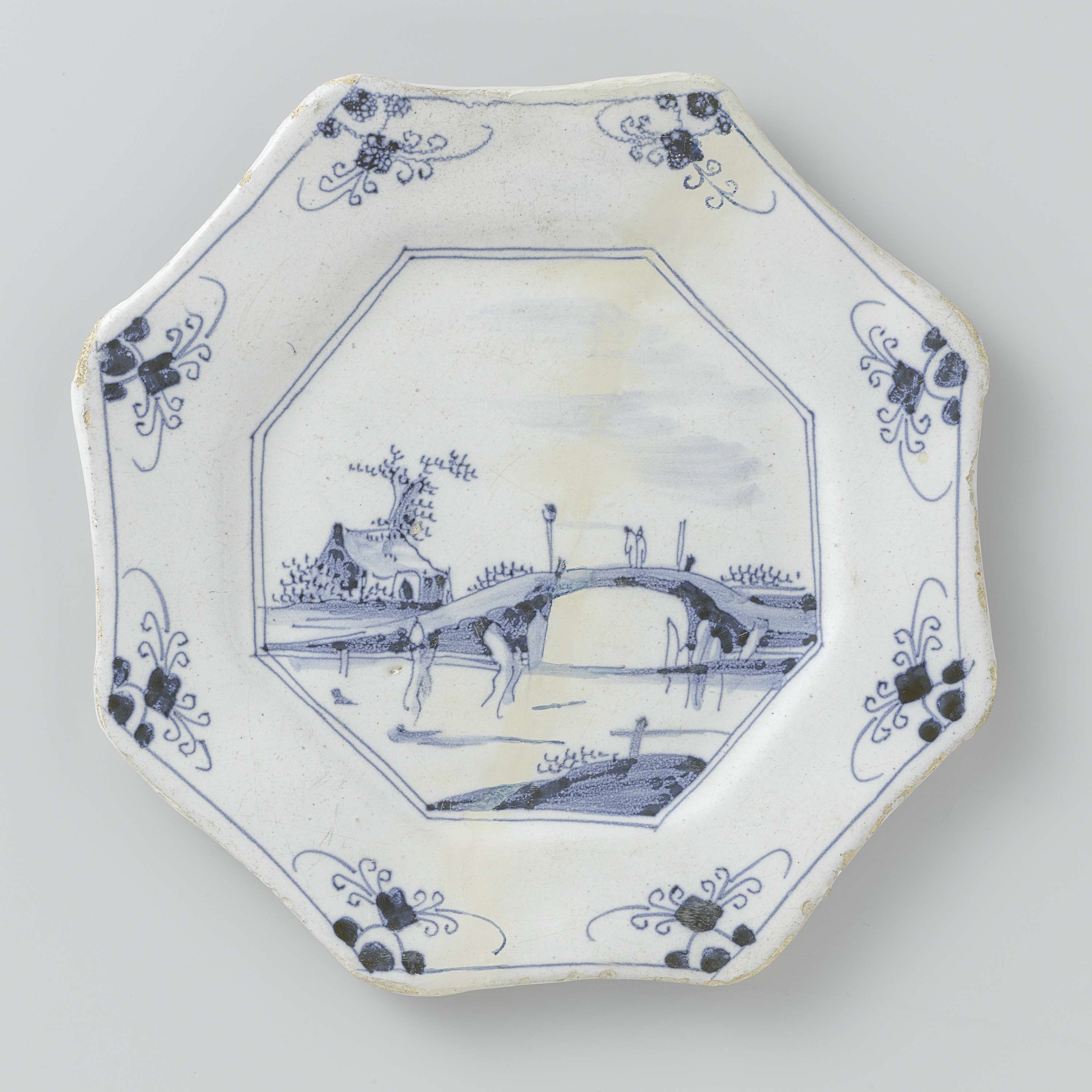 Bord, achthoekig, beschilderd met landschap. (Q27767)
