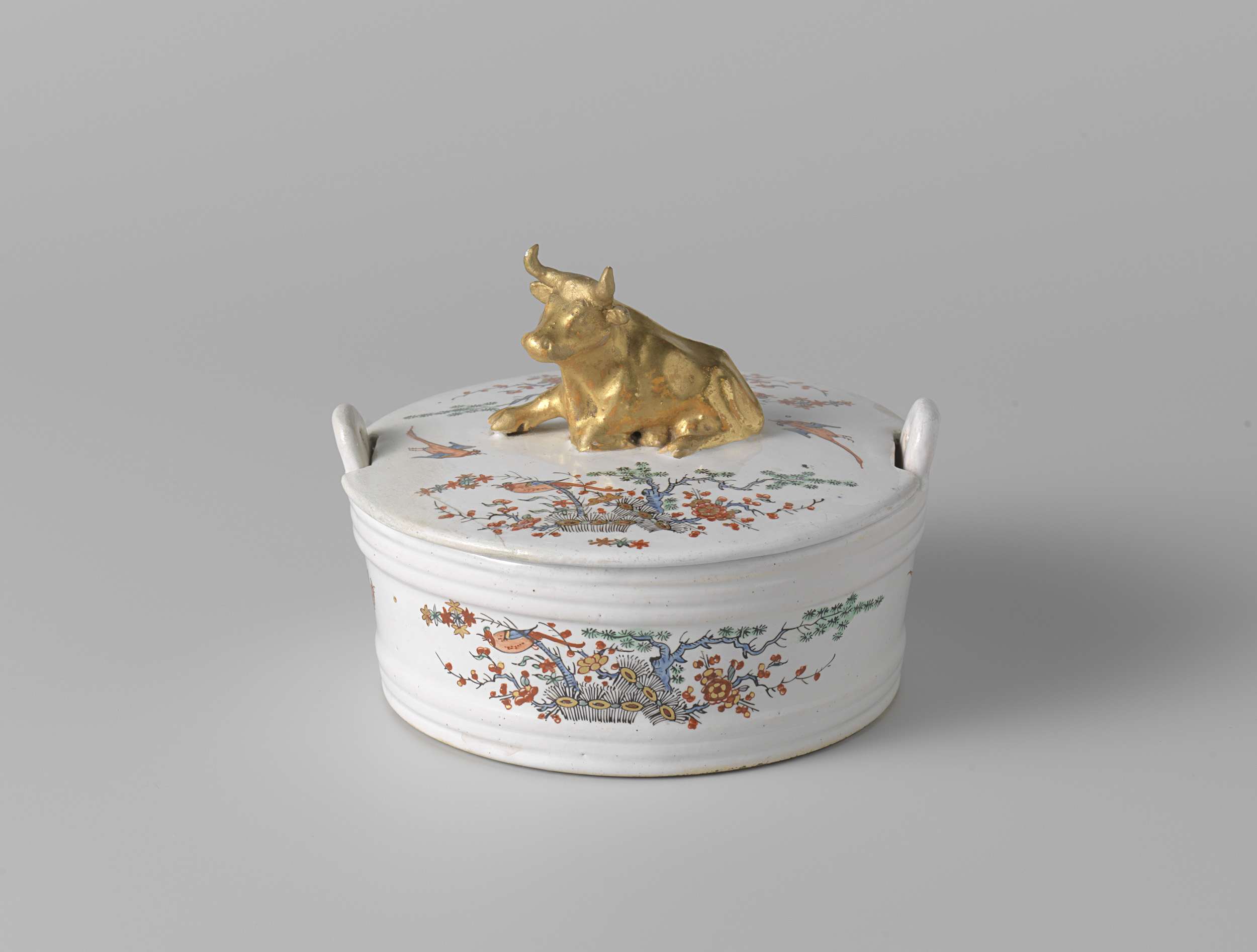 Botervloot met deksel, bekroond door een liggende koe (Nederlands)