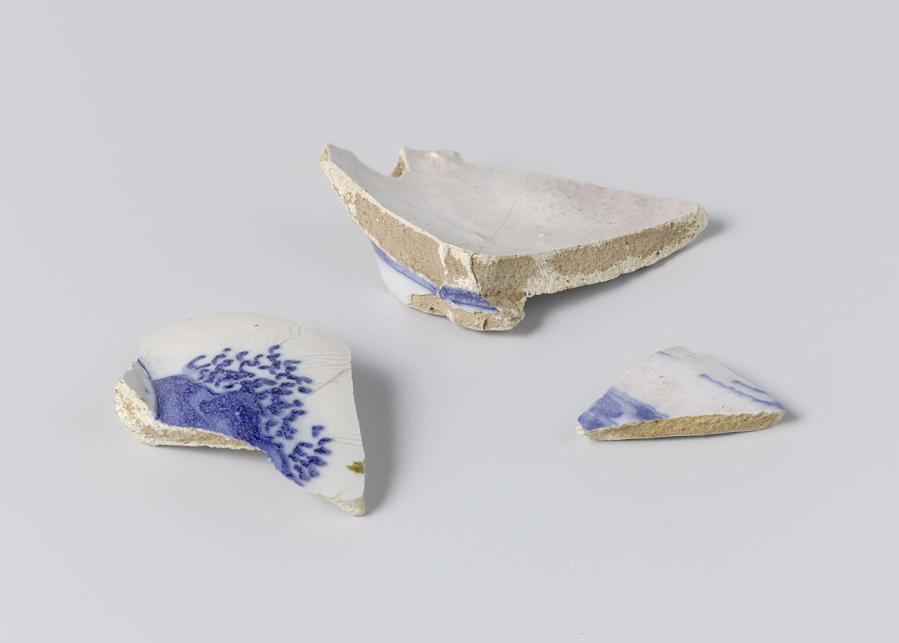 | Nederlands | Fragment, drie stuks, van een in blauw beschilderde vaas |