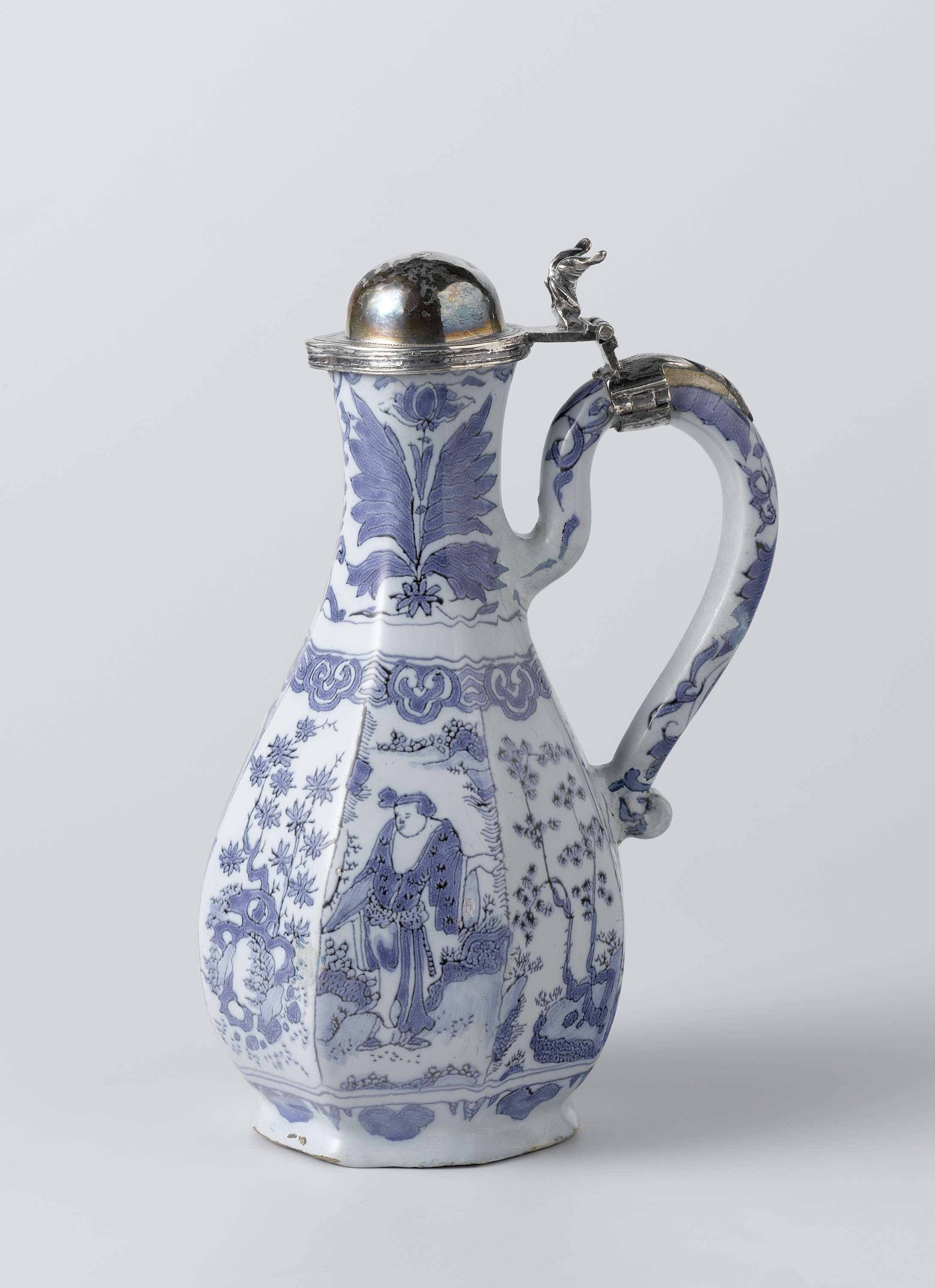 Kan van faience met een deksel van zilver (Nederlands)