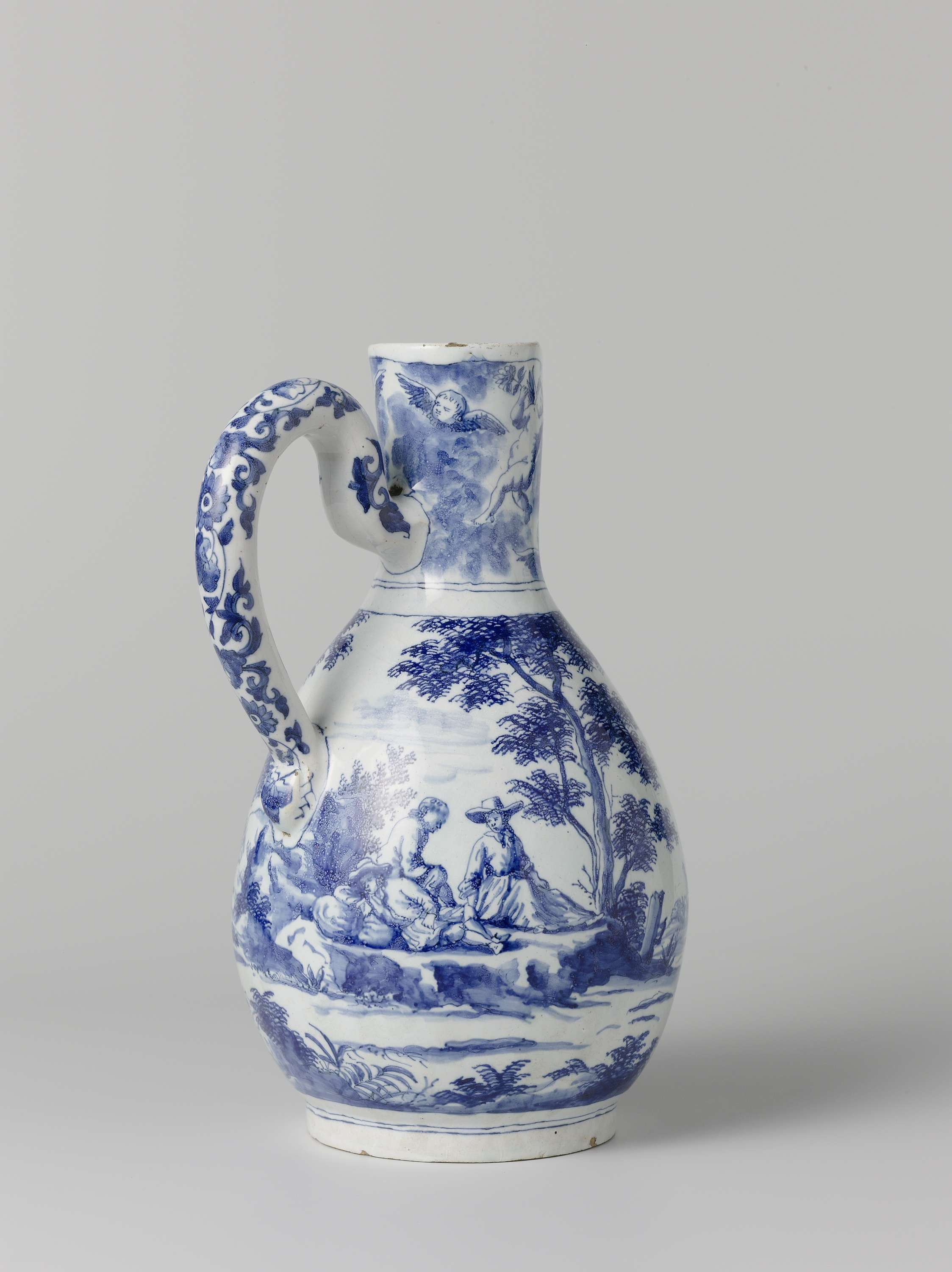 Kan van aardewerk, blauw beschilderd (Nederlands)