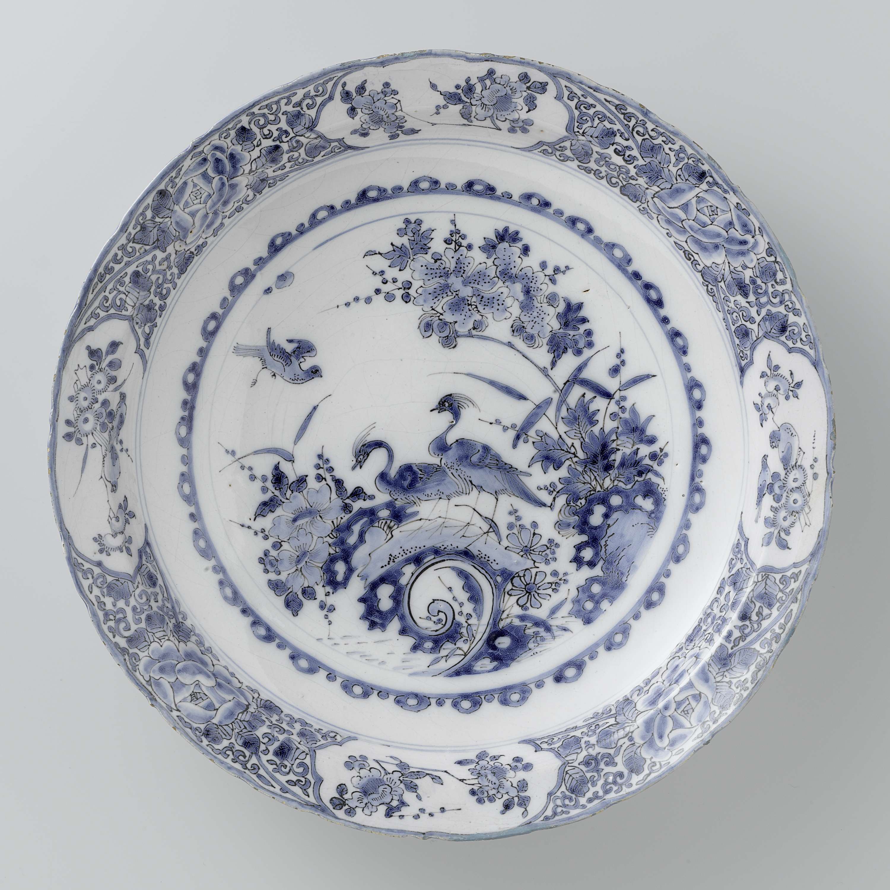 Schotel van faience met een op het Chinese porselein geïnspireerde bloemendecoratie (Nederlands)