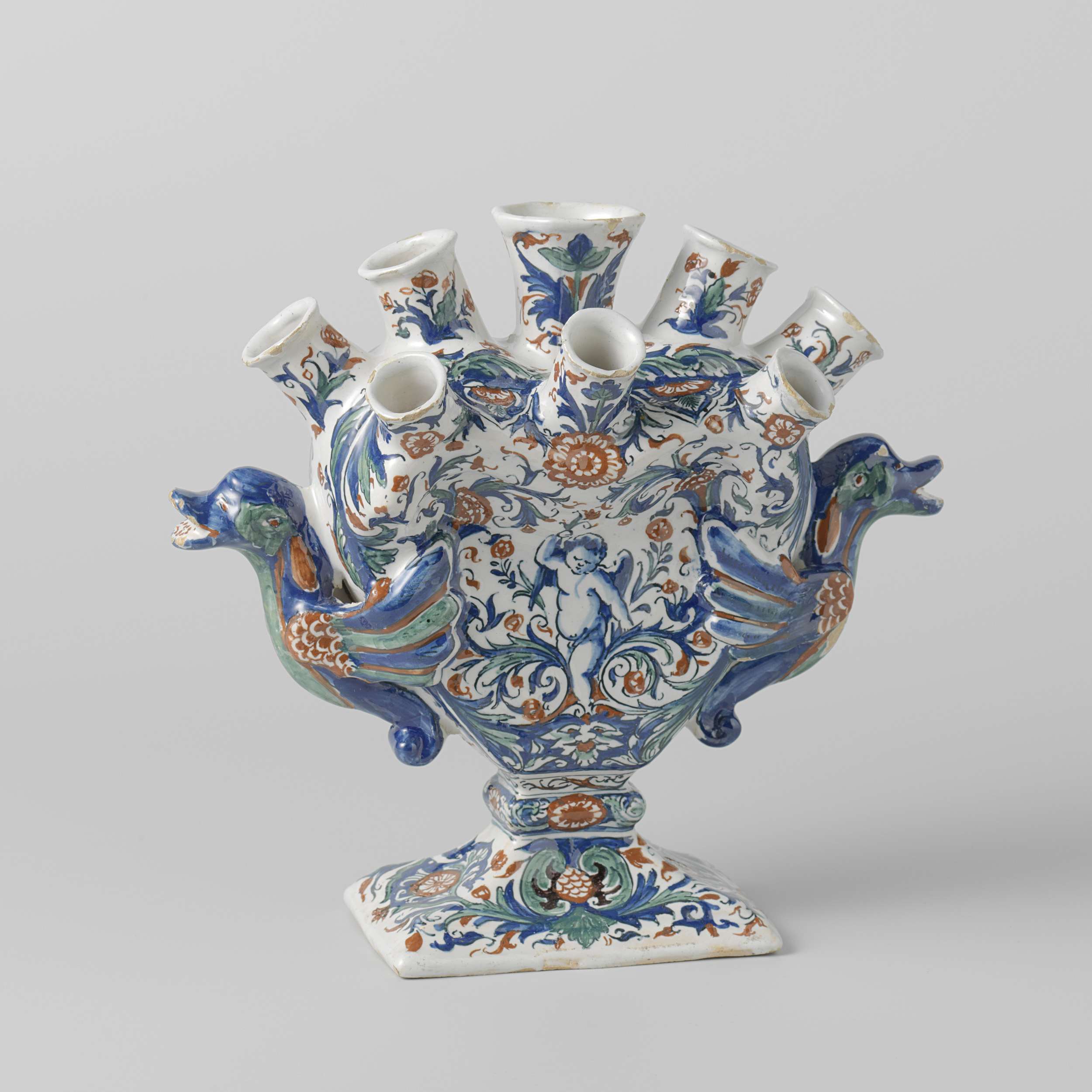 bloemhouder met acht tuiten en vogelfiguren aan de zijkanten (Q28760)