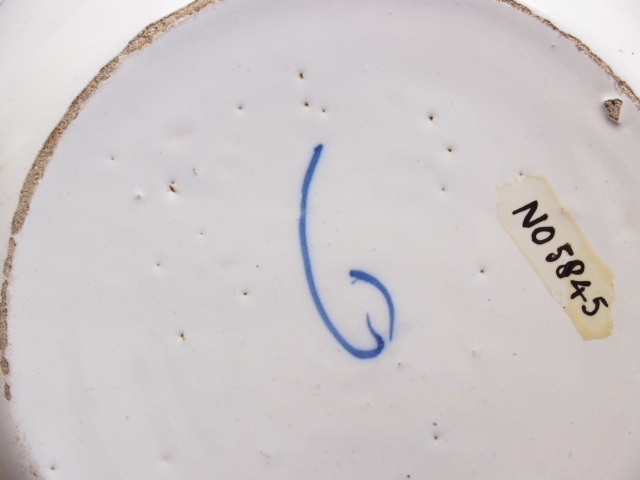 Pannenkoek, op het plat in blauw gedecoreerd met de spreuk: 'Is hy qùaet soo meyt hem' in een medaillon met bovenaan een...n, aan weerszijden een gevleugeld vosje en onderaan een engelenkopje||Delft||onbekend||Keramiekmuseum Princessehof NO 05845 |