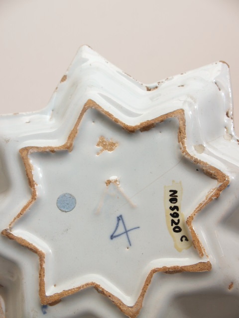 Stervormig schaaltje van een confiturenset (het centrale deel) in blauw-wit gedecoreerd met centraal een pauw en bloemen... de rand.||Delft||De Grieksche A, plateelbakkerij (periode Adrianus Kocx 1686-1701)||Keramiekmuseum Princessehof NO 05920.C