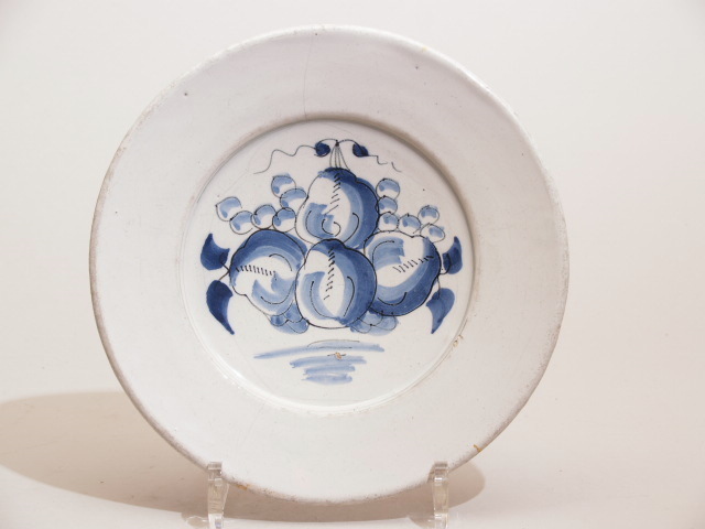Pannekoek, in blauw gedecoreerd op een wit glazuur. Alleen het plat is gedecoreerd met een voorstelling van drie peren.||Delft||onbekend||Keramiekmuseum Princessehof OKS 2005-132