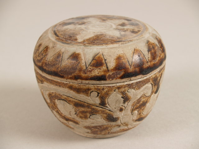 Doos met deksell met decor van gestileerde, florale motieven (Nederlands)
