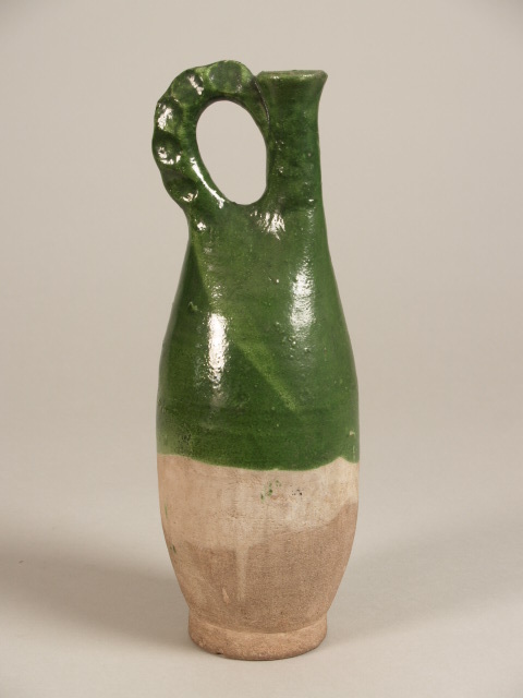 Kruik met handvat en bedekt met een groen glazuur (Nederlands)