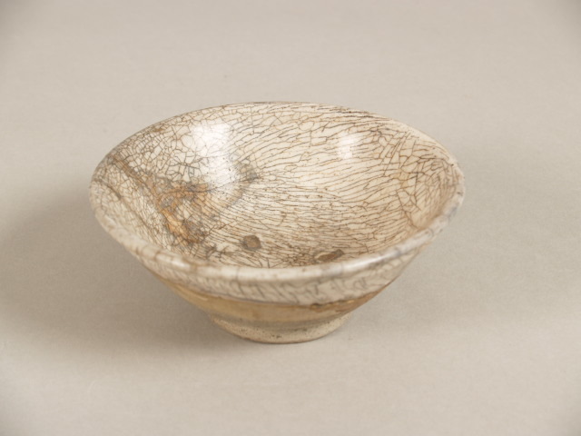 Kom met wit craquelé glazuur en proenresten aan de binnenkant (Q29571)