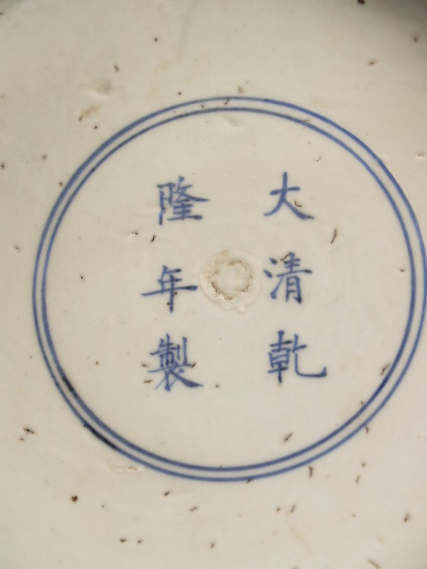 onderop in blauw zes-merk Qianlong (Nederlands)
