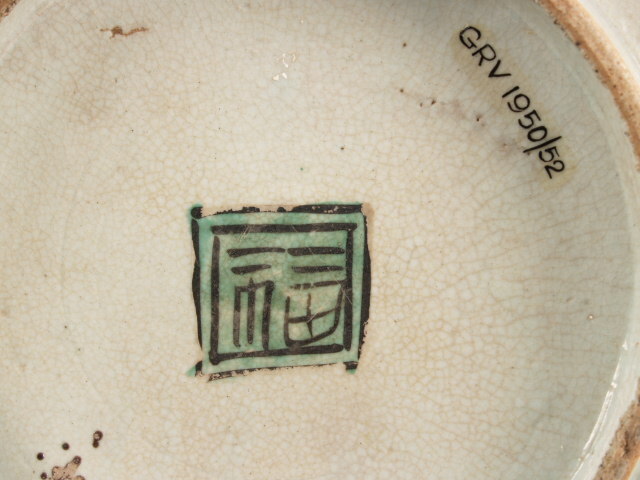 onder op de bodem in door groen beschermd zwart in zegelvorm de gelukwens "fuku" (Nederlands)