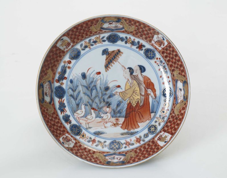 | Nederlands | Bord met decor van de Parasoldames, imari. |