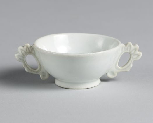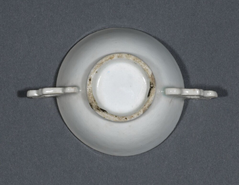 Kommetje met gekartelde oren en een gespikkelde glazuur. Dit soort kommetjes werden waarschijnlijk gebruikt voor het serveren van wijn in de voorouderverering in Confucianistische rituelen. In Korea neemt de productie en specialisatie van porselein enorm toe met de oprichting van de Joseon dynastie (1392-1897). Het witte porselein is een luxe product en wordt eerst nog vervaardigd in kleine oplages op verschillende plekken in Korea. Vanaf circa 1460 wordt het gemaakt in de Buwon ovens (Gwangju, Gyeonggi-do provincie) die onder keizerlijke/overheidscontrole staan. Hierdoor is de kwaliteit erg hoog en is het porselein uit deze periode vaak zeer verfijnd. Bij de vestiging van de Joseon dynastie wordt het Neo-Confusianisme verheven tot staatsleer. Binnen deze leer is de kleur wit belangrijk in de uitvoering van de rituelen, het staat voor puurheid en ingetogen elegantie . Het witte, ongedecoreerde, porselein wordt om die reden hoog gewaardeerd door de keizer en de Koreaanse elite en het vertegenwoordigd daarmee de Joseon cultuur. In de loop van de 16de eeuw wordt het porselein ook op andere plaatsen geproduceerd voor de lokale markt. Bijzonder is dat het Koreaanse porselein in t... (Nederlands)