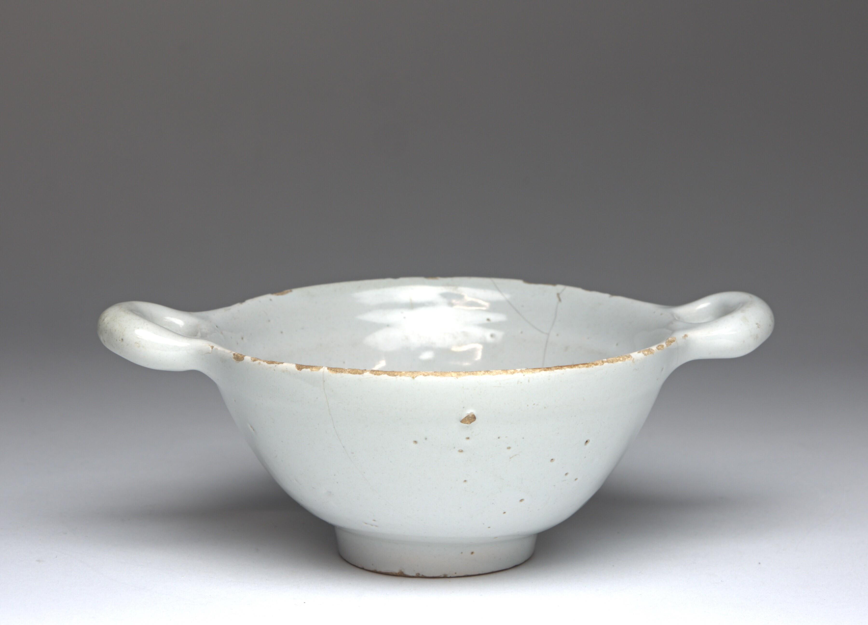 Onbeschilderde, Delfts witte papkom met twee oren (Nederlands)
