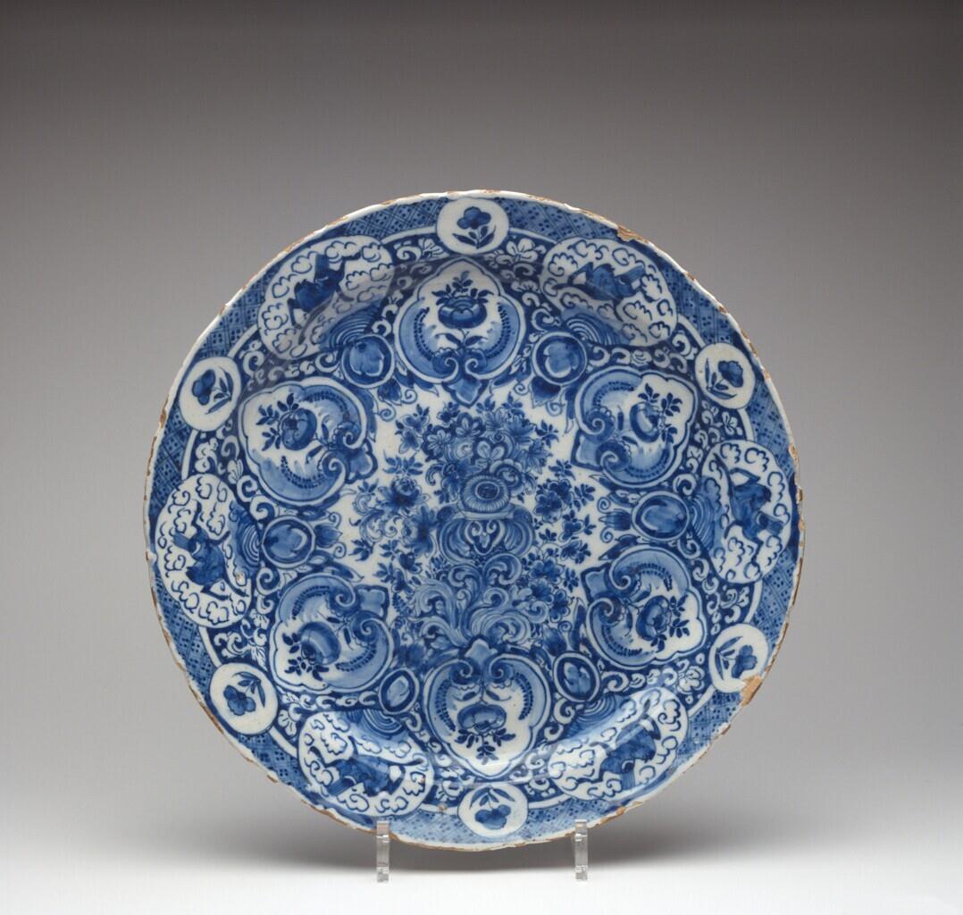 met bloemmotieven en motieven van een vliegend paard , in het plat een bloemenvaas (Nederlands)