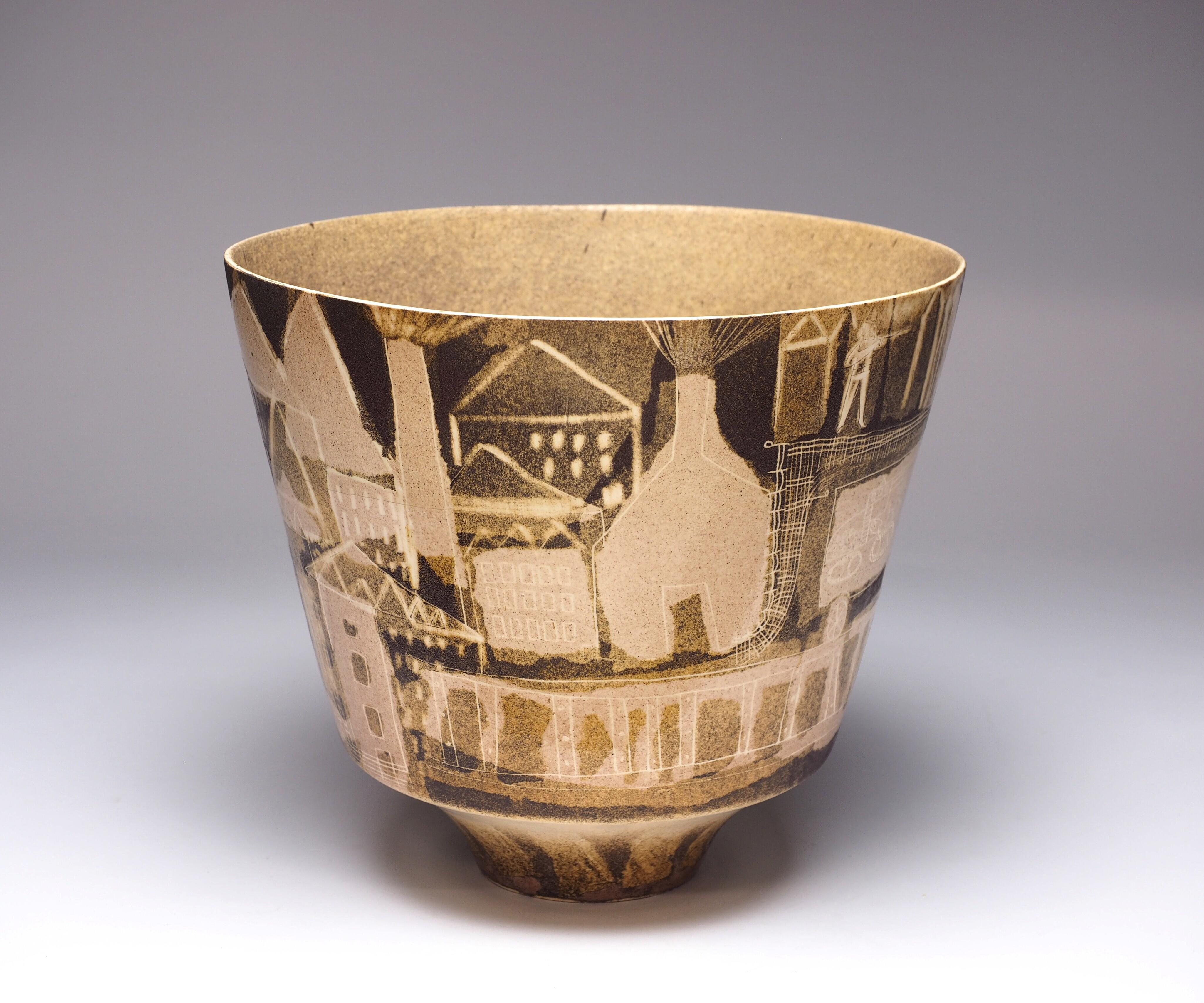 Groen-polychroom bekervormige vaas, getiteld 'Vaas voor Mijnheer Krupp' met ingekraste decoratie (Nederlands)