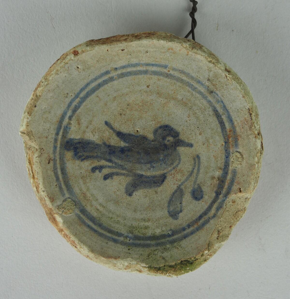 een scherf met een afbeelding van een vogel. (Nederlands)