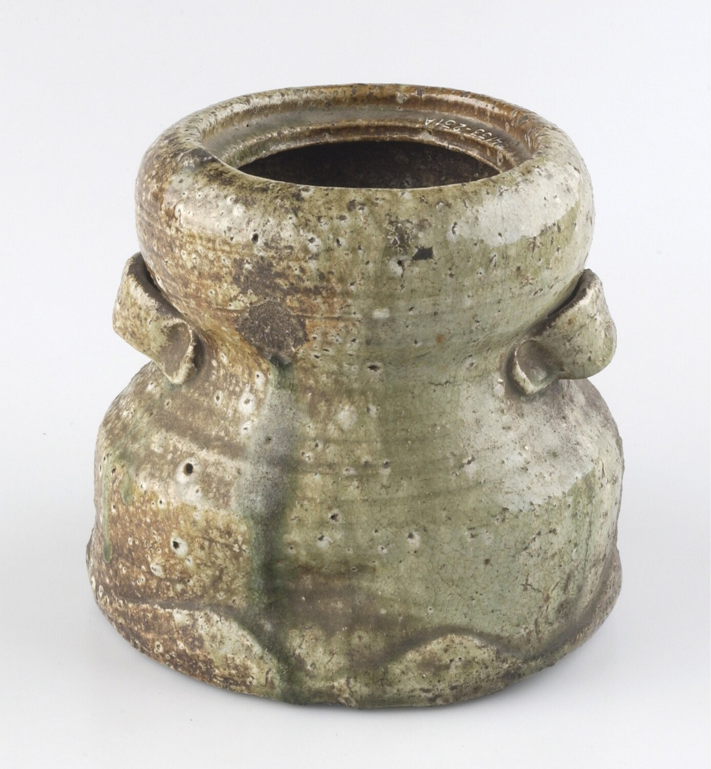 Aardewerken waterpot met deksel, die gebruikt wordt tijdens de theeceremonie (Nederlands)