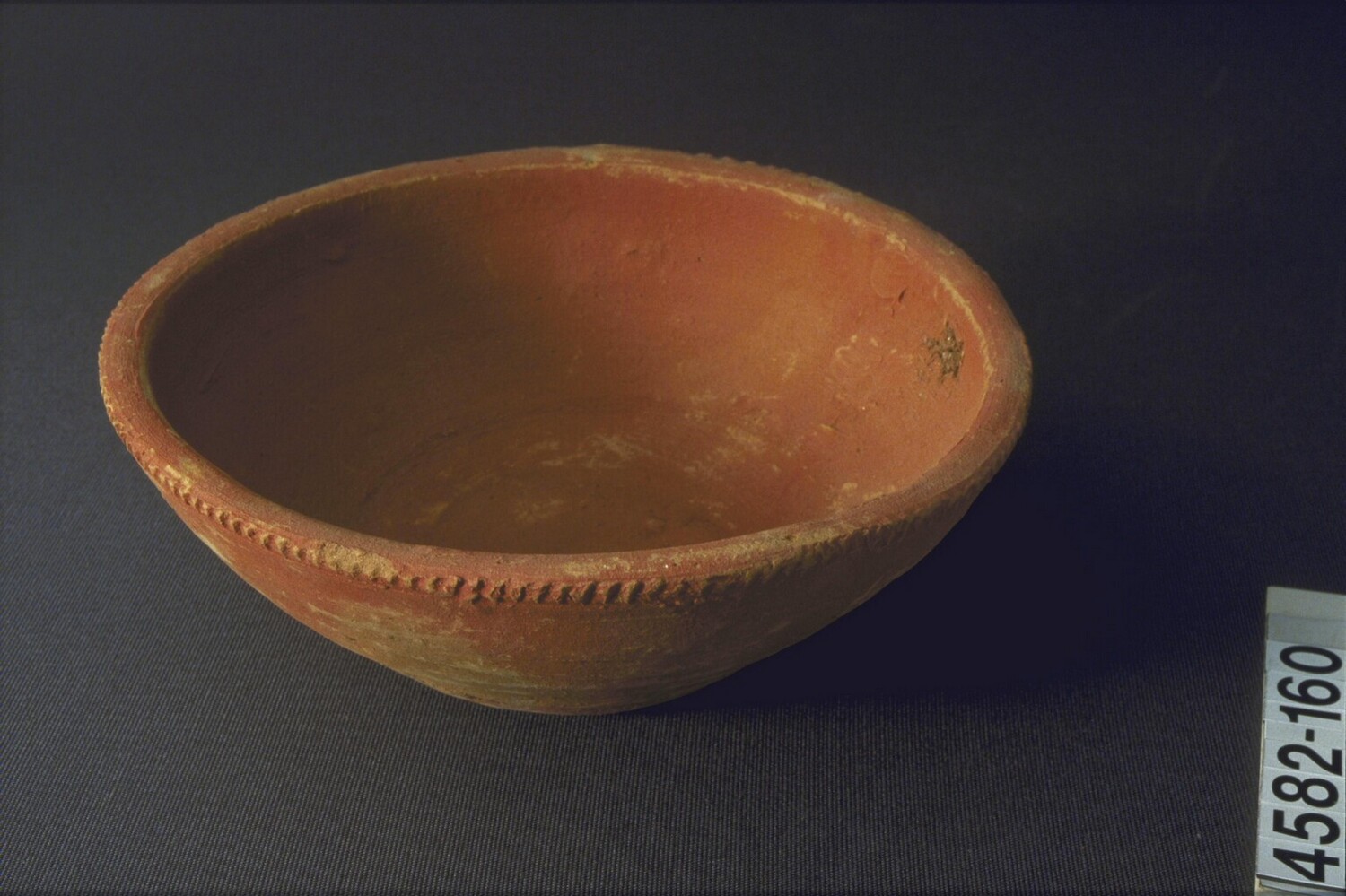 Aardewerken schaal met ribbeltjes langs de rand (Nederlands)