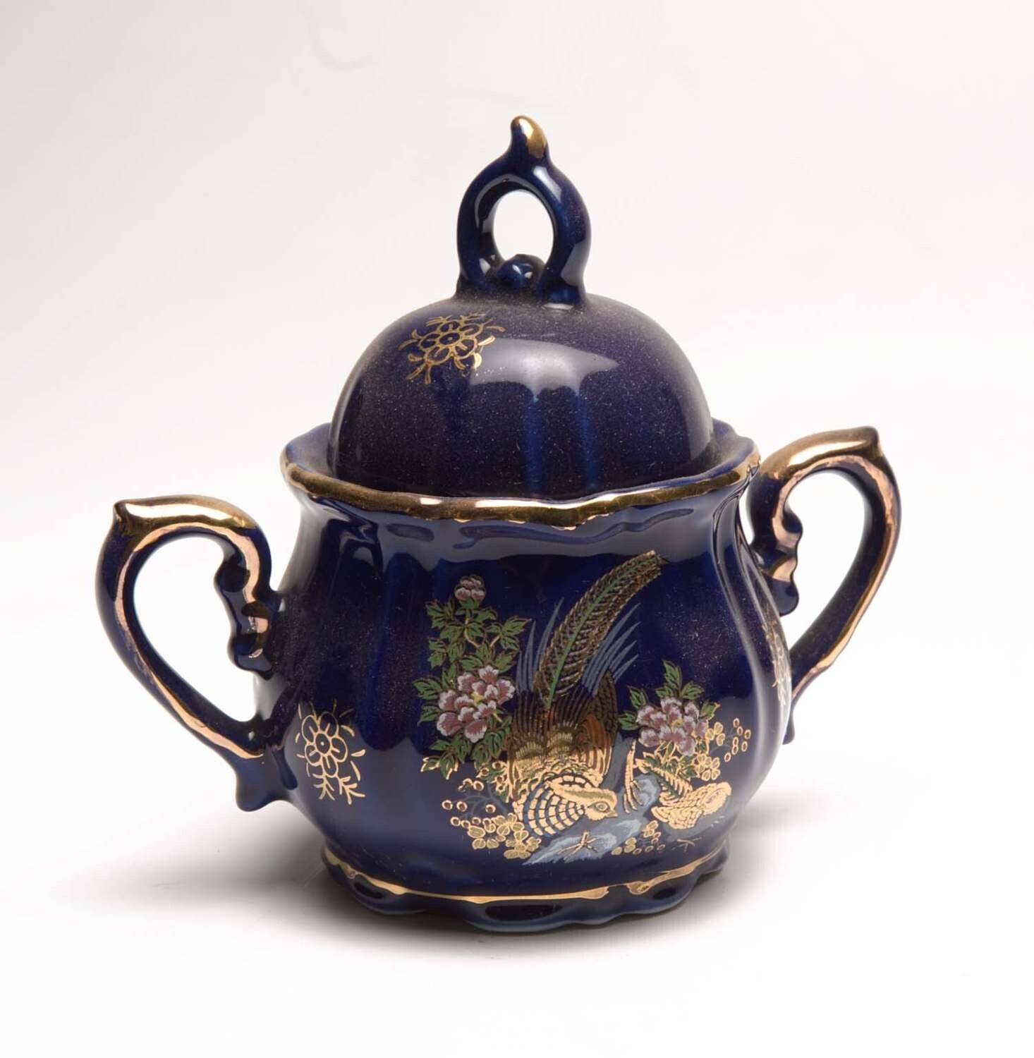 Geglazuurd aardewerken suikerpot met deksel (Nederlands)