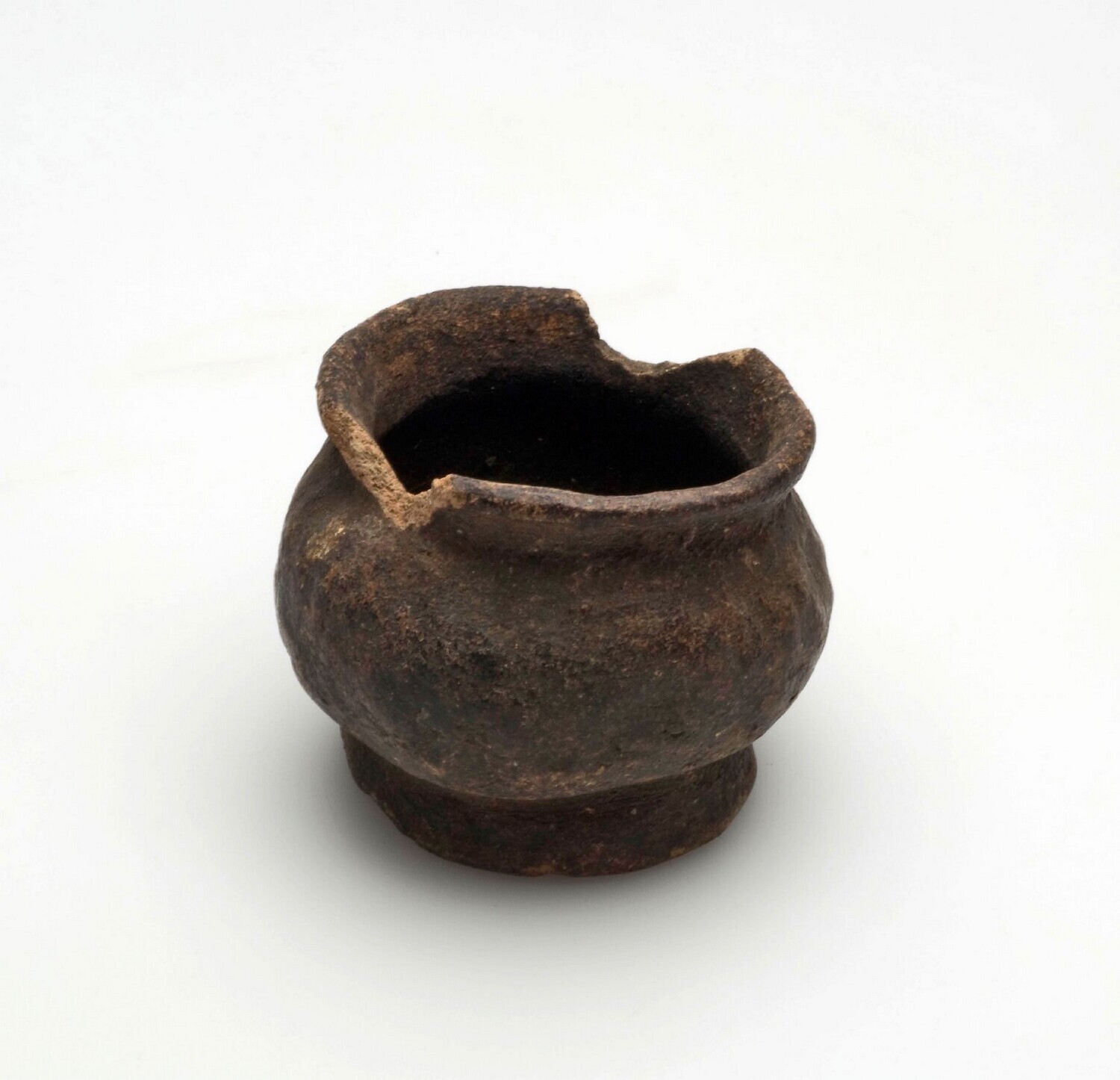 Miniatuur potje op voet, behorende bij een priesteressenzak (Nederlands)